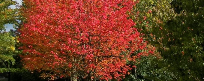 - Ácer vermelho. Uma das árvores mais comuns na América do Norte, com uma rica cor outonal. É menos propensa à murcha de Verticillium e menos suscetível de ser afetada pela mancha negra do alcatrão. A colheita regular das folhas reduz ainda mais os riscos.
